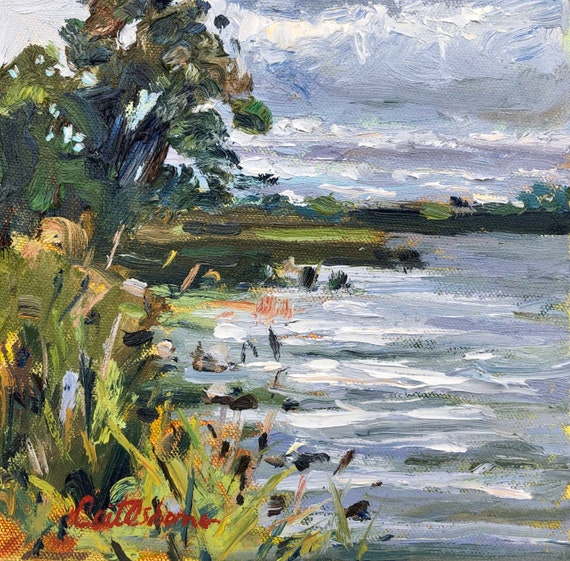 Original Irish Landscape Painting In Oil Lakeshore At Lough Etsy Uk