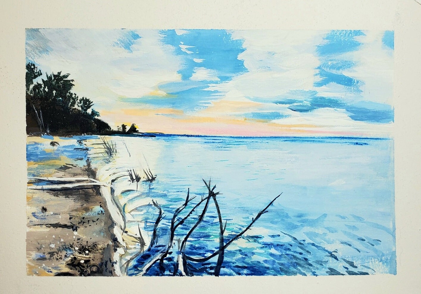 Lake Michigan Painting Sunset Lakeshore Little Traverse Bay Etsy Uk