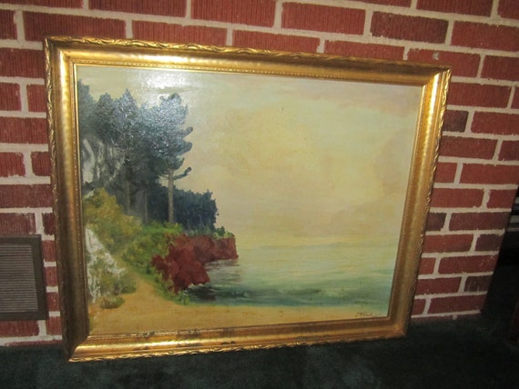 Vintage Original 35x28 Framed Wisconsin Lakeshore Landscape Etsy Uk