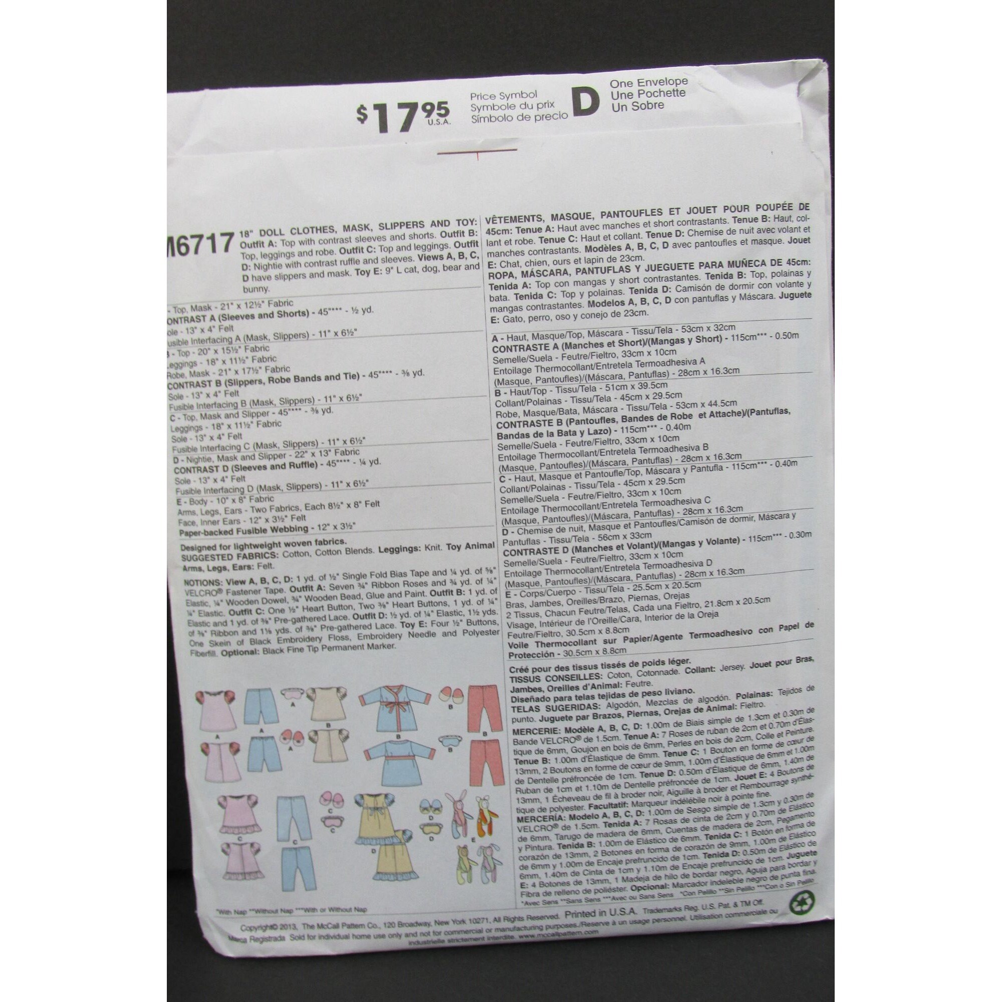 Mccall S Crafts Sewing Pattern M6717 18 Doll Etsy